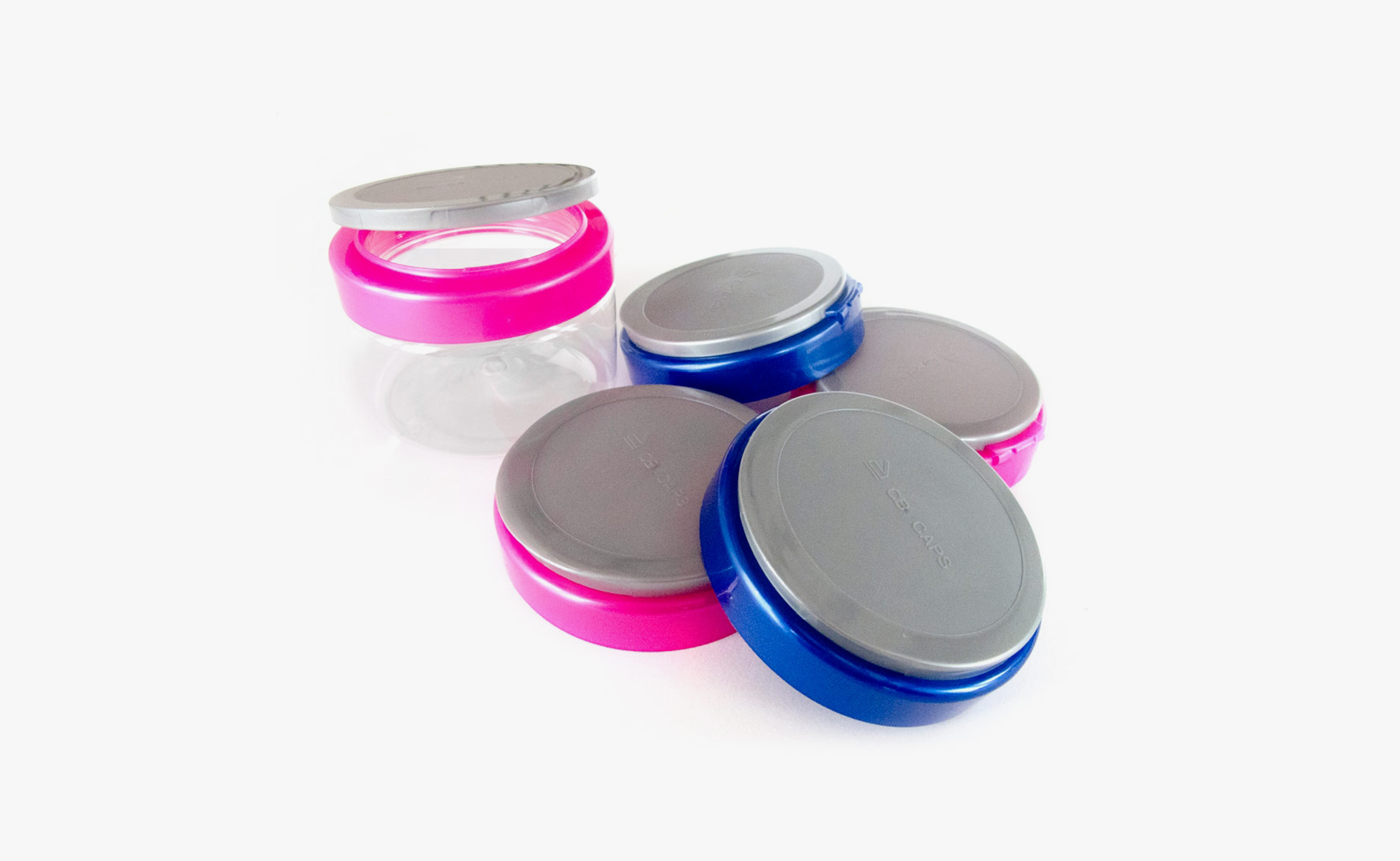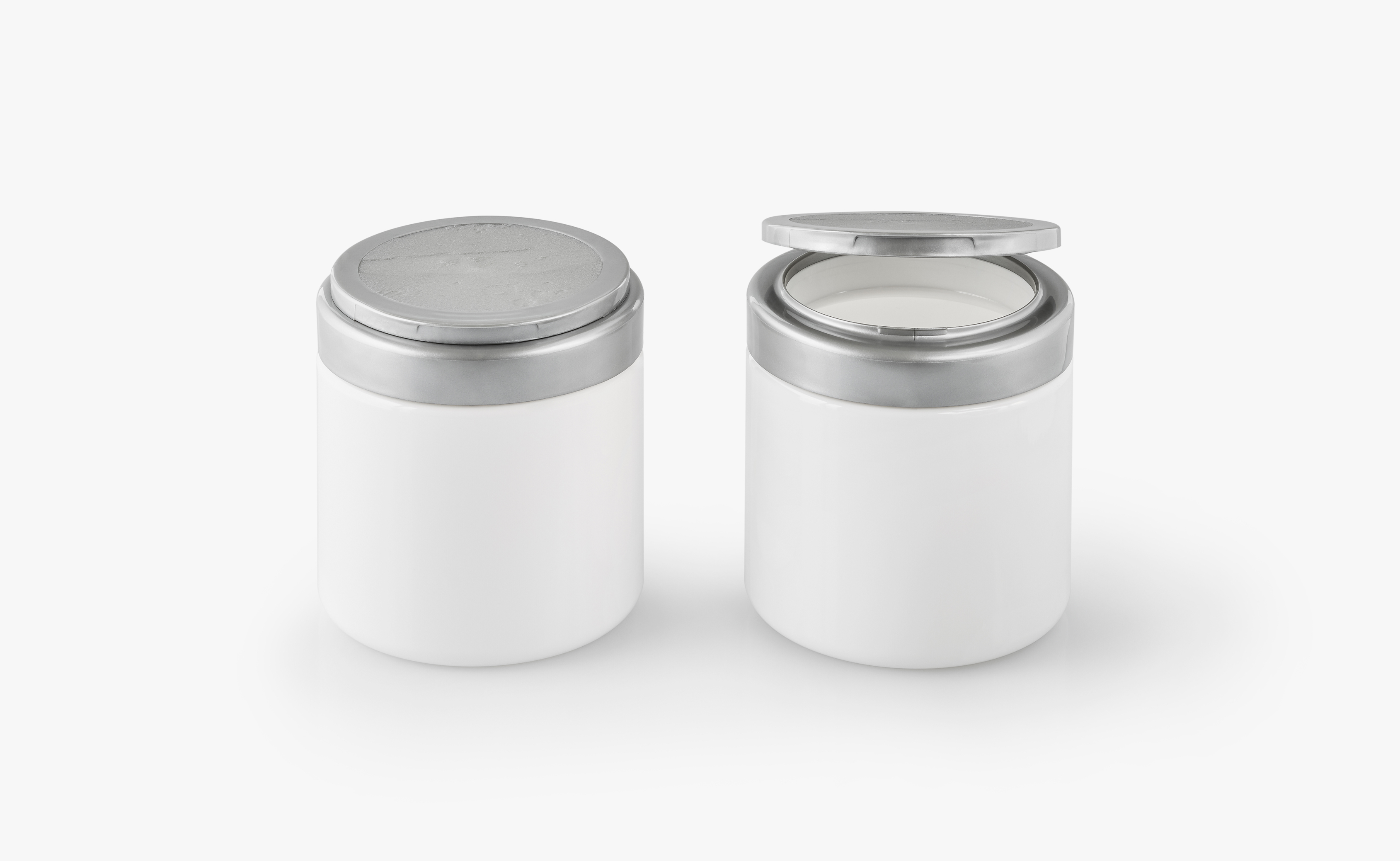 Tappo a vite realizzato anche in versione bicolor, con top dall'apertura a scatto facile da usare anche con una sola mano.