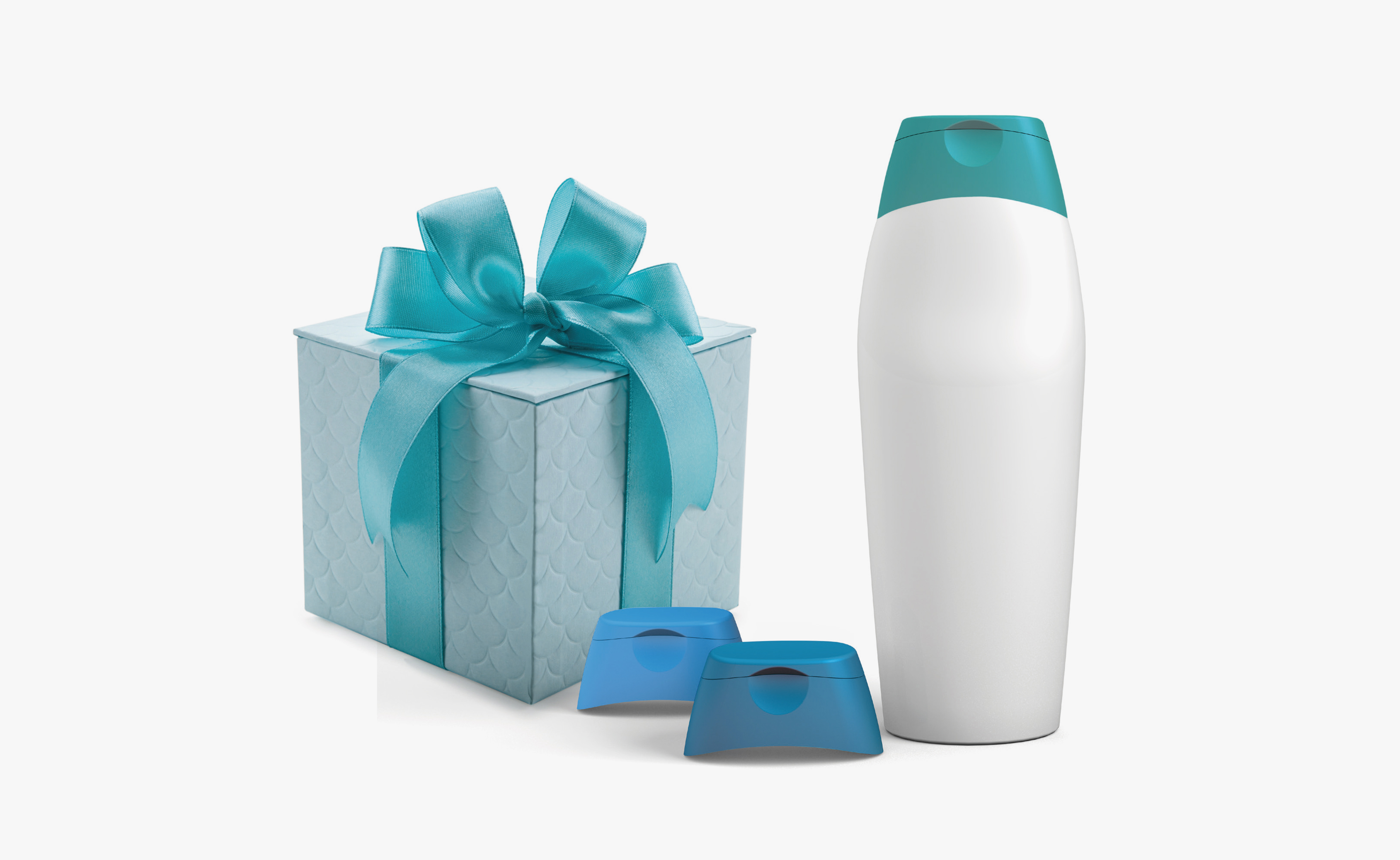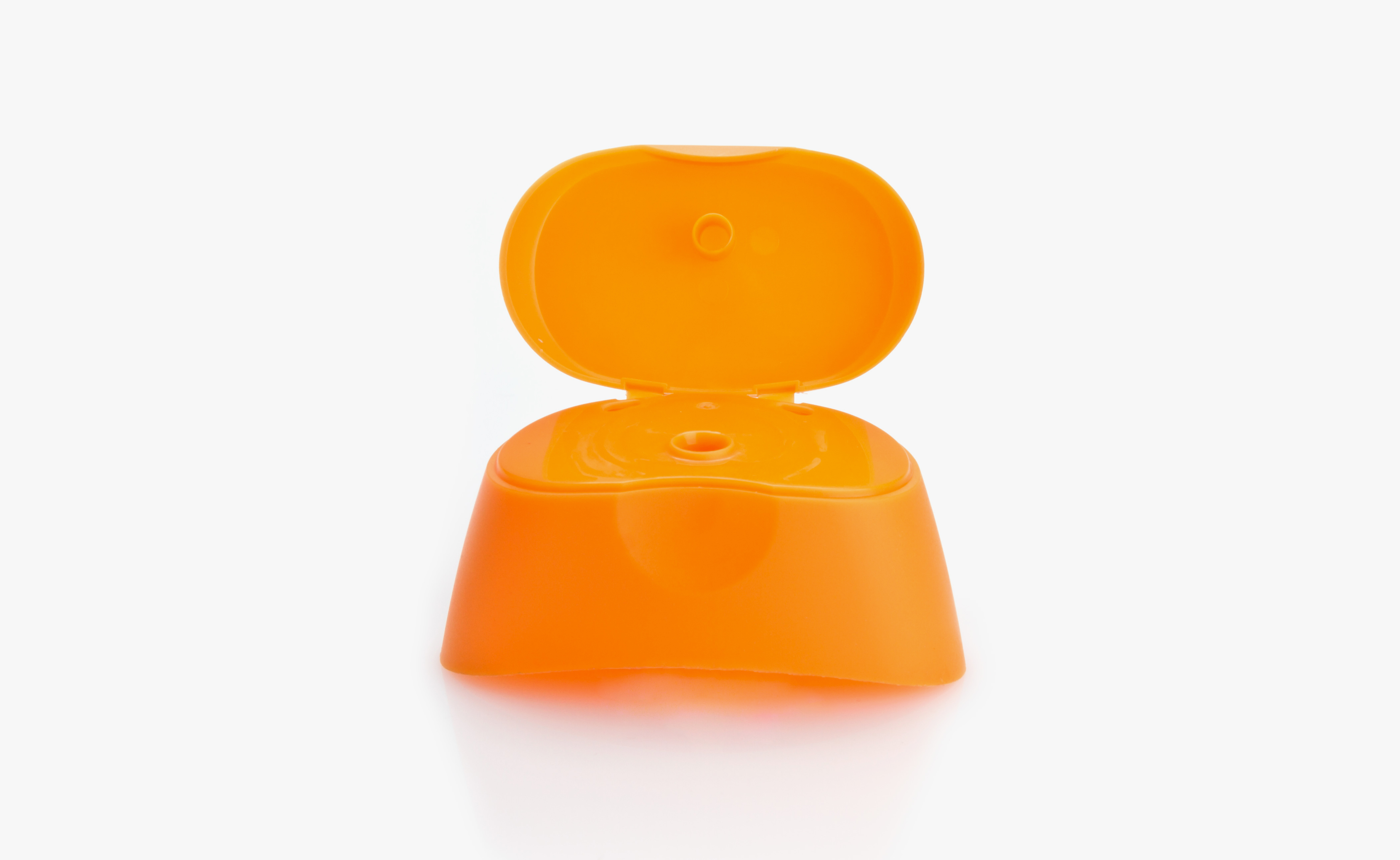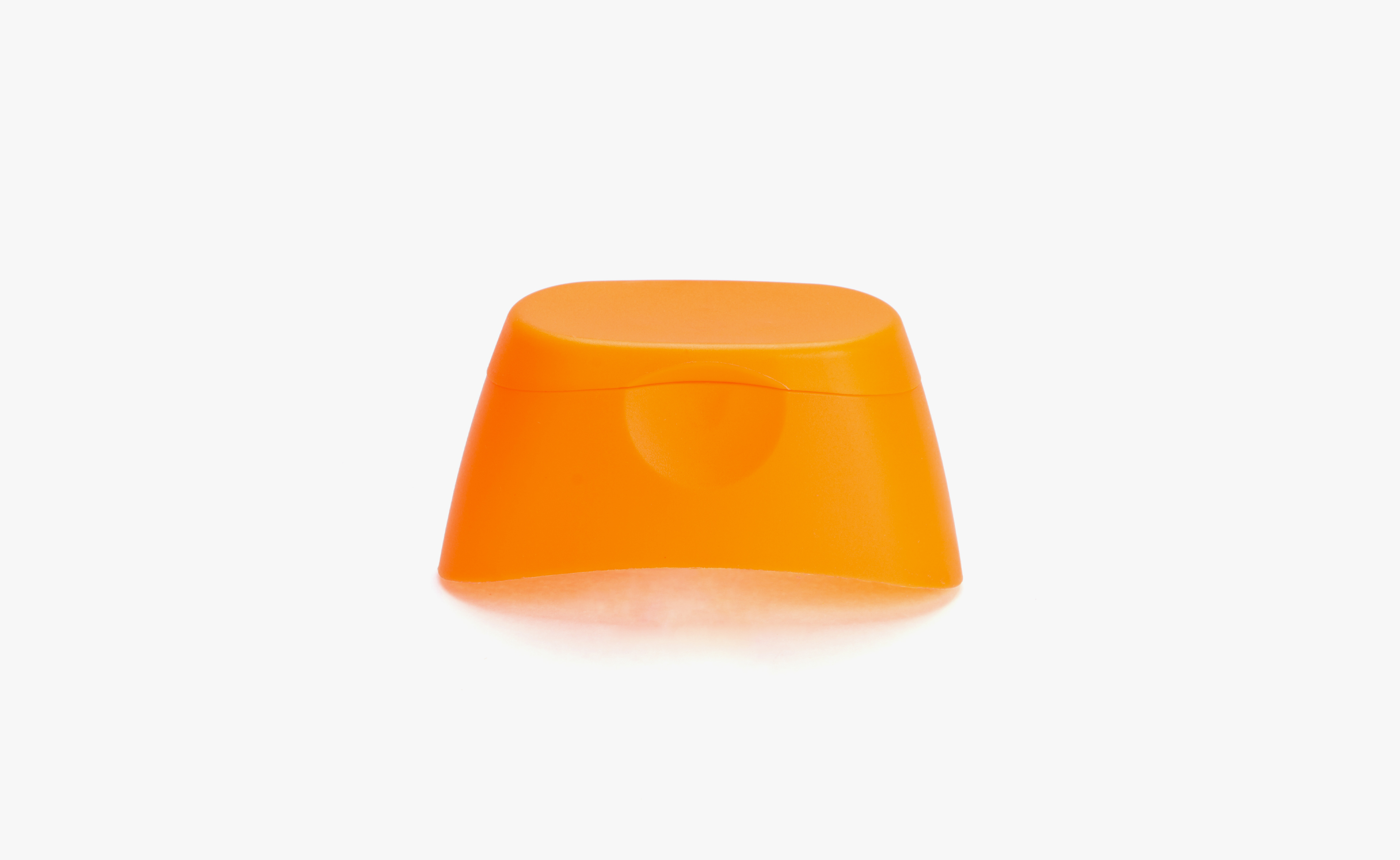 Tappo flip-top con aggancio a scatto e collo 28PCO. Modello con profilo laterale che scende per integrare perfettamente la spalla del flacone. Piacevole design che conferisce